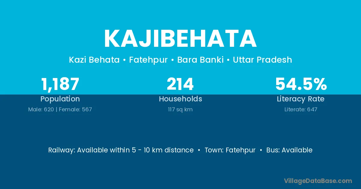 Kajibehata village has a total population of 1,187 people, of which 620 are males and 567 are females.