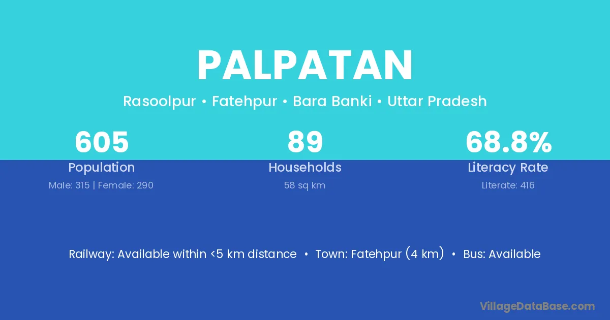 Fatehpur (4 km) is the nearest town to Palpatan village for major economic activities and is located approximately 4 km away.