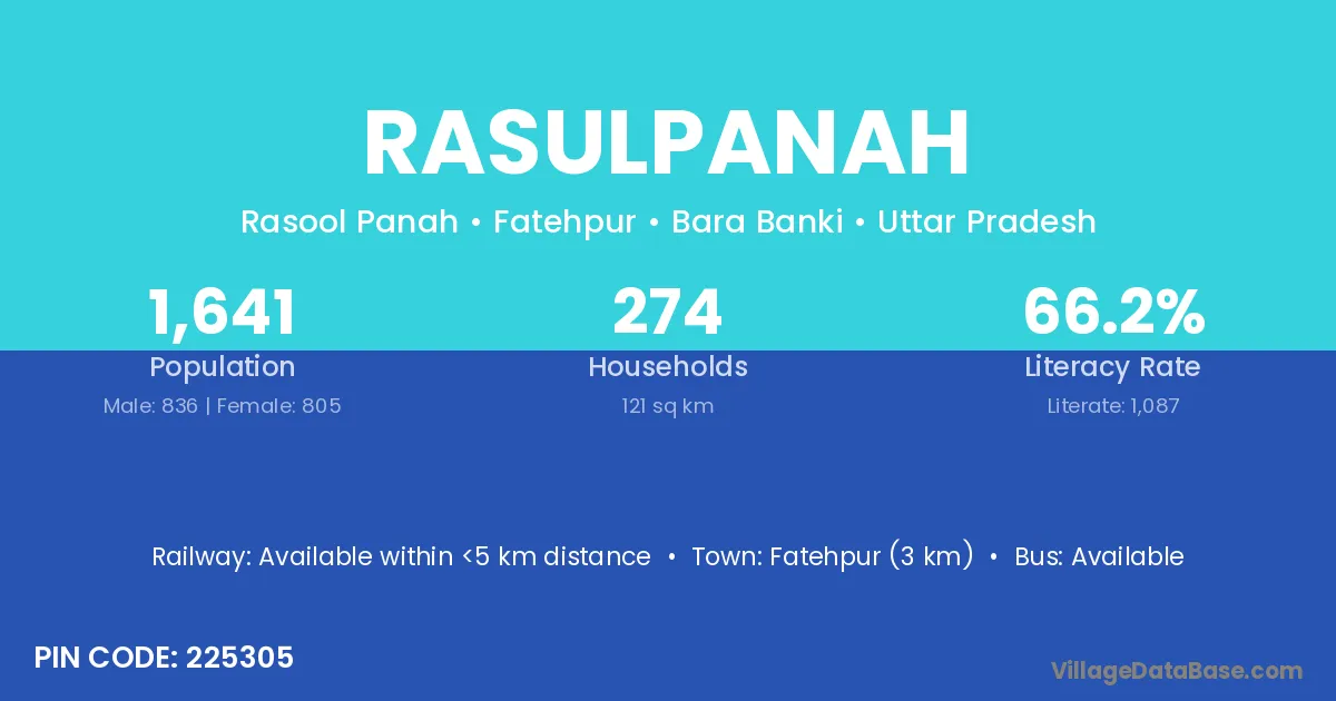 Fatehpur (3 km) is the nearest town to Rasulpanah village for major economic activities and is located approximately 3 km away.