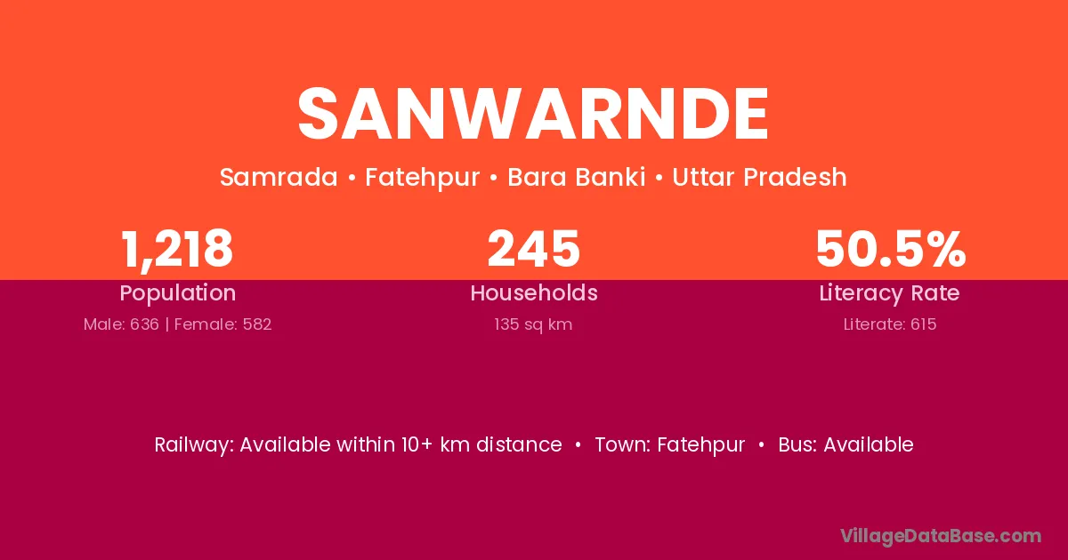 Sanwarnde village has a total population of 1,218 people, of which 636 are males and 582 are females.