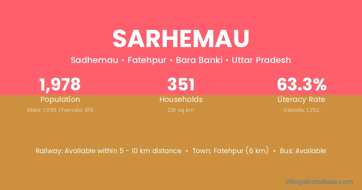 Fatehpur (6 km) is the nearest town to Sarhemau village for major economic activities and is located approximately 6 km away.