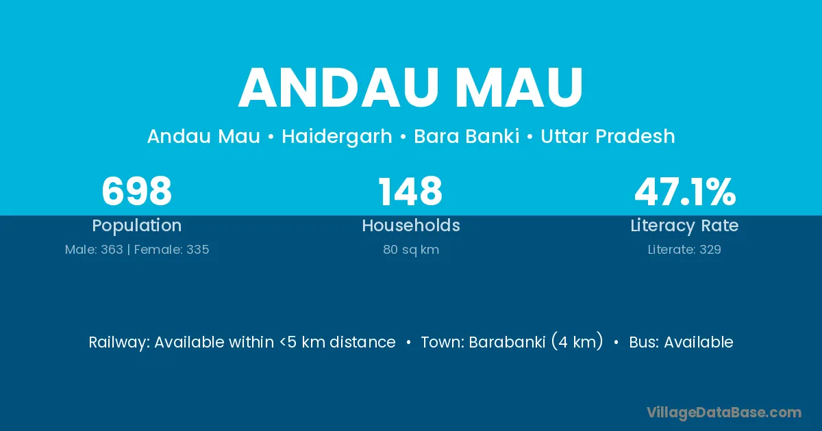 Barabanki (4 km) is the nearest town to Andau Mau village for major economic activities and is located approximately 4 km away.
