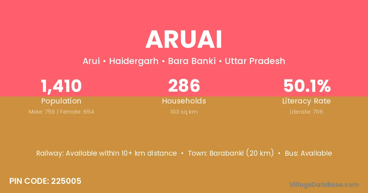 Barabanki (20 km) is the nearest town to Aruai village for major economic activities and is located approximately 20 km away.