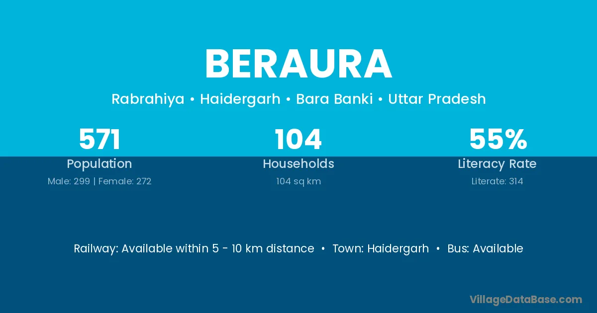 Haidergarh is the nearest town to Beraura village for major economic activities