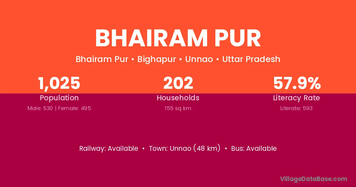 Barabanki (6 km) is the nearest town to Bhairam Pur village for major economic activities and is located approximately 6 km away.