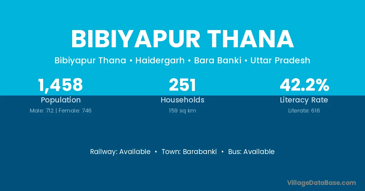 Bibiyapur Thana village has a total population of 1,458 people, of which 712 are males and 746 are females.