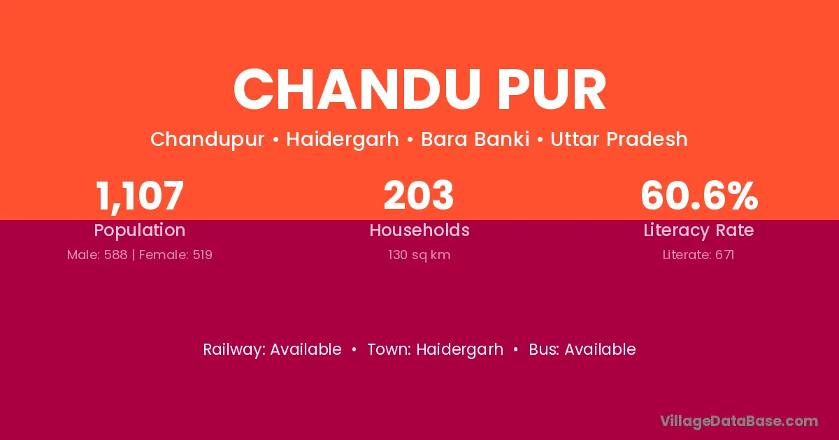 Chandu Pur village has a total population of 1,107 people, of which 588 are males and 519 are females.