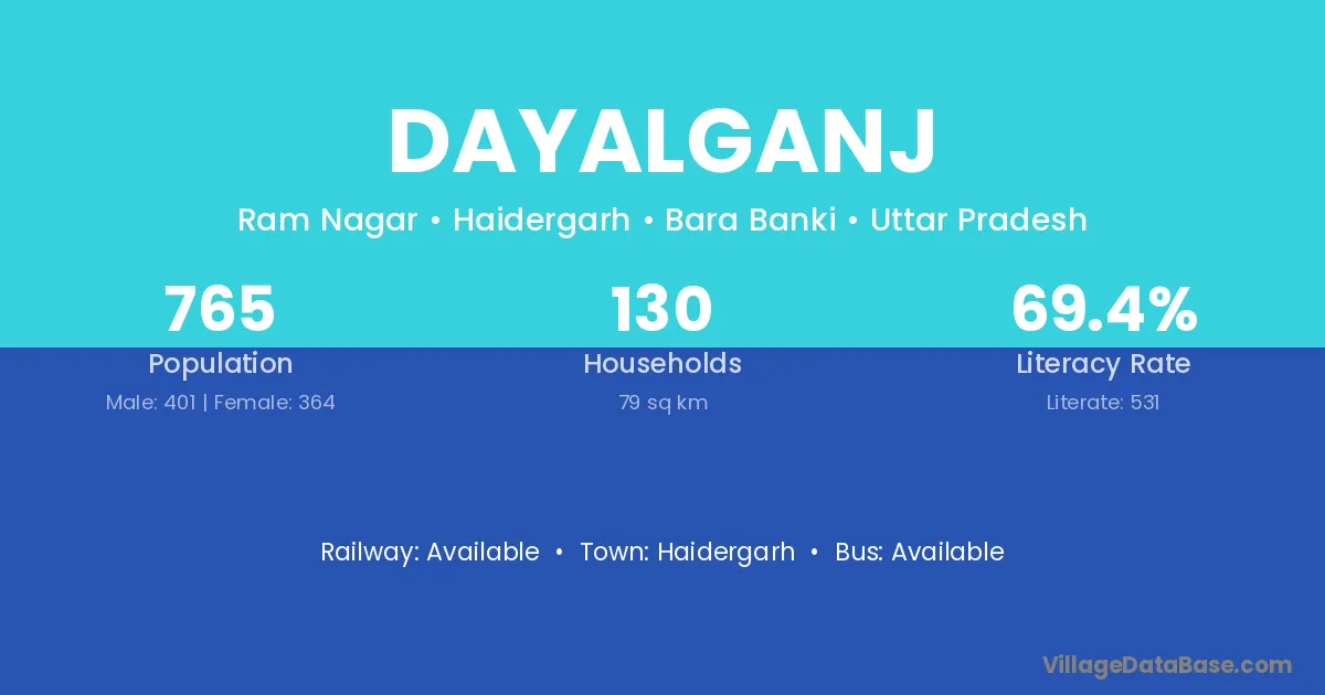 Haidergarh is the nearest town to Dayalganj village for major economic activities