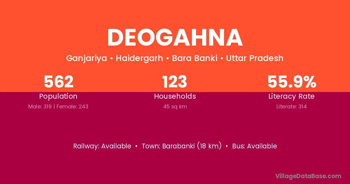 Barabanki (18 km) is the nearest town to Deogahna village for major economic activities and is located approximately 18 km away.