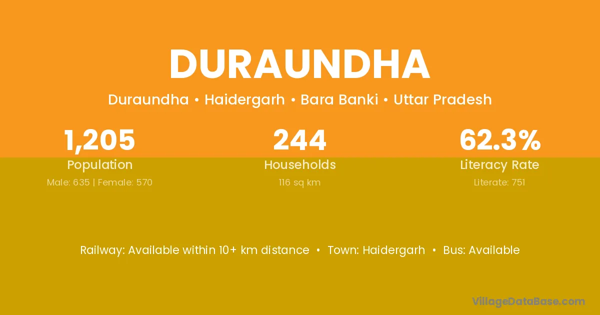 Haidergarh is the nearest town to Duraundha village for major economic activities