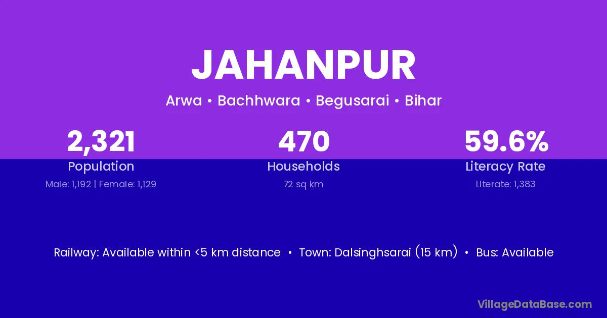 The literacy rate of Jahanpur village is 53.56%. Male literacy stands at 58.76% and female literacy at 47.13%.