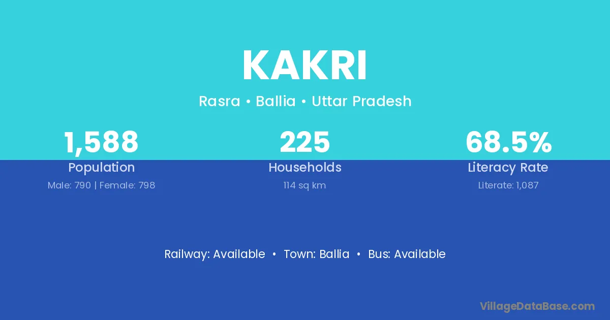 Kakri village has a total population of 3,094 people, of which 1,596 are males and 1,498 are females.