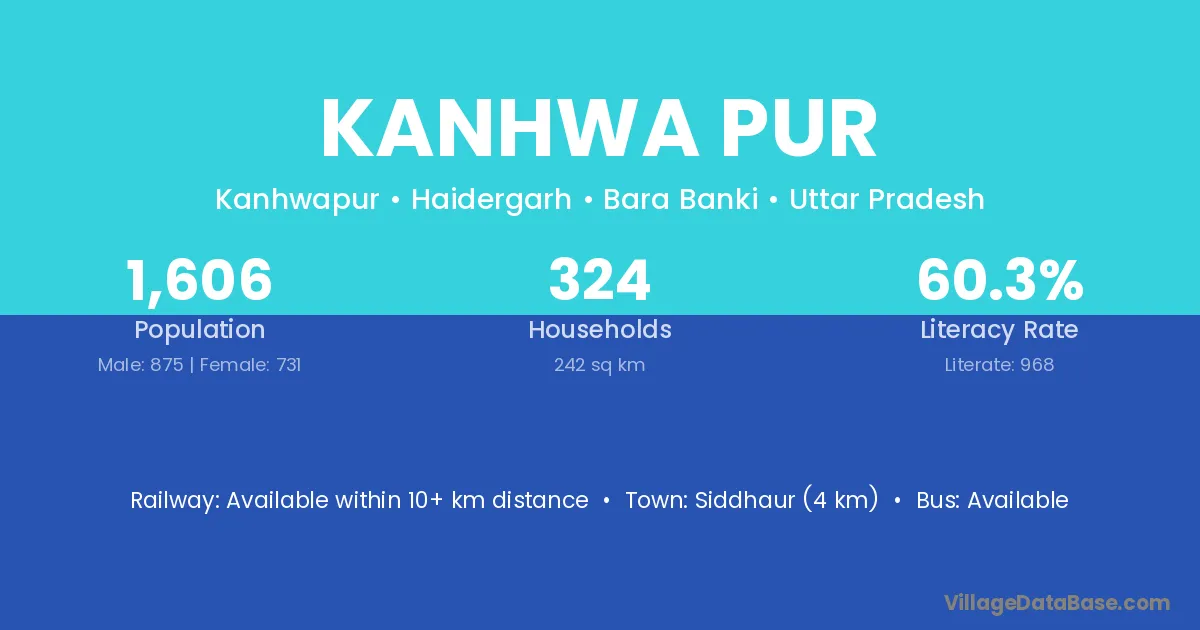 Siddhaur (4 km) is the nearest town to Kanhwa Pur village for major economic activities and is located approximately 4 km away.