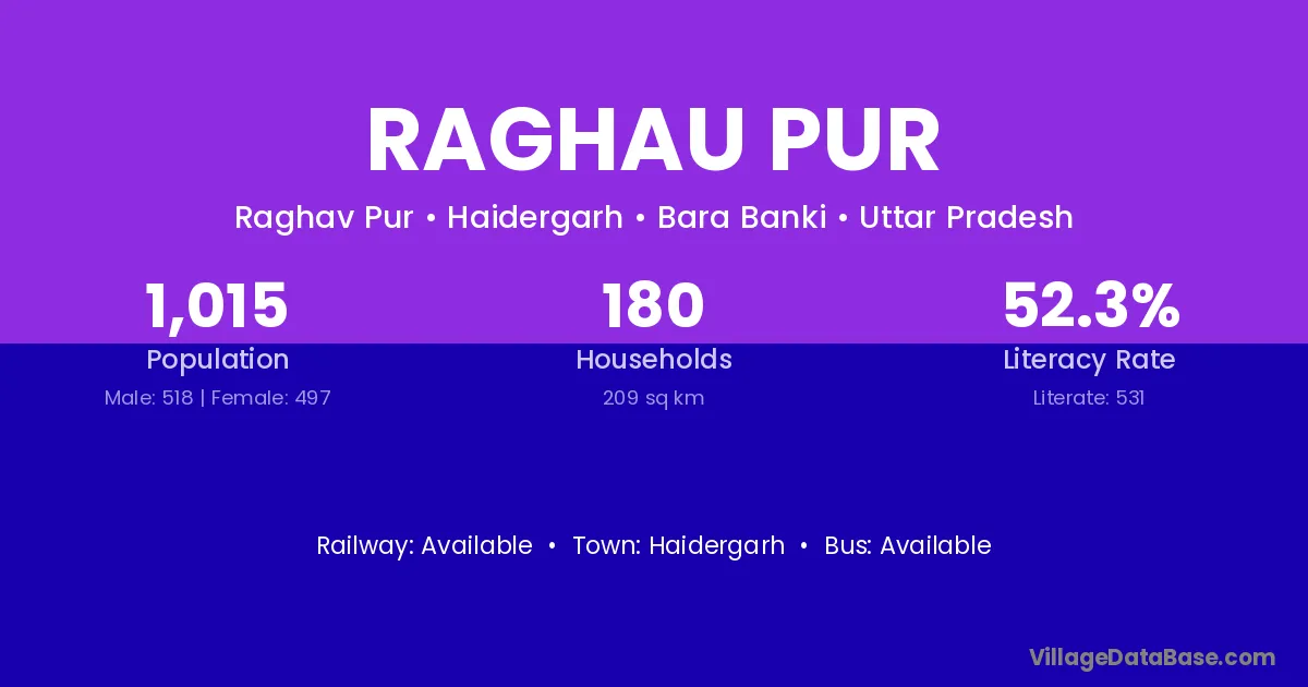 Haidergarh is the nearest town to Raghau Pur village for major economic activities