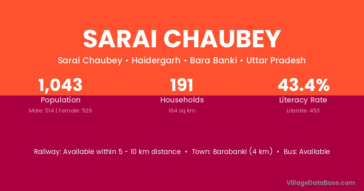 Barabanki (4 km) is the nearest town to Sarai Chaubey village for major economic activities and is located approximately 4 km away.