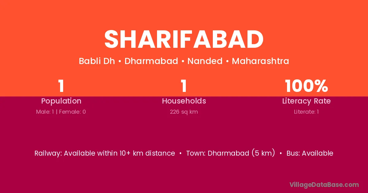 The literacy rate of Sharifabad village is 46.98%. Male literacy stands at 53.90% and female literacy at 39.03%.