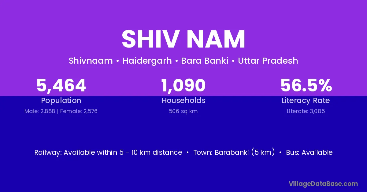 Barabanki (5 km) is the nearest town to Shiv Nam village for major economic activities and is located approximately 5 km away.
