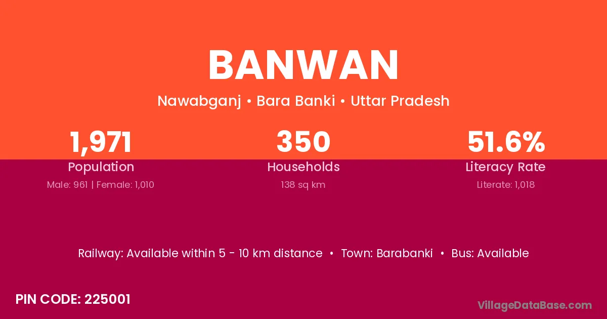 Banwan village has a total population of 1,971 people, of which 961 are males and 1,010 are females.