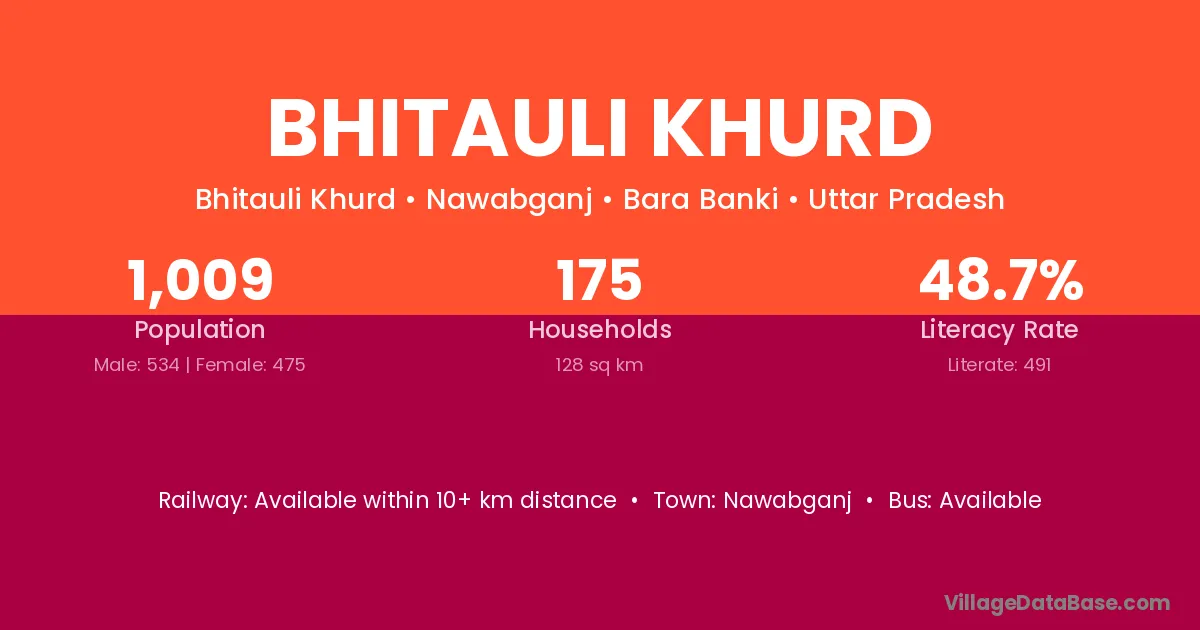Bhitauli Khurd village has a total population of 1,009 people, of which 534 are males and 475 are females.