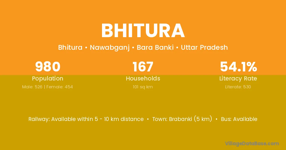 Brabanki (5 km) is the nearest town to Bhitura village for major economic activities and is located approximately 5 km away.