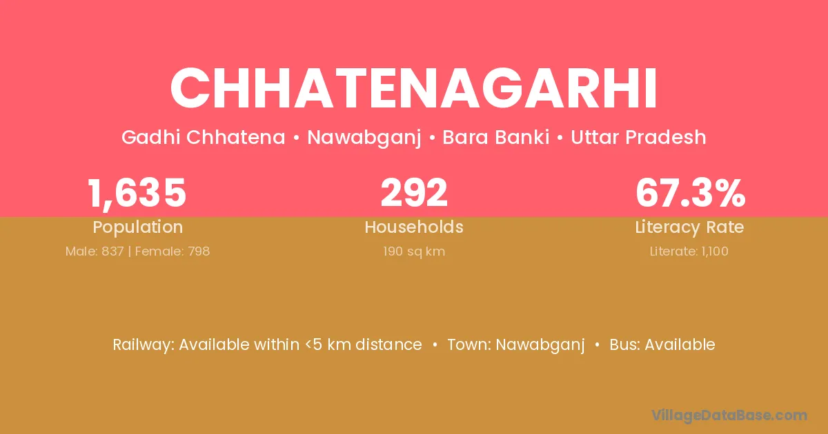 Chhatenagarhi village has a total population of 1,635 people, of which 837 are males and 798 are females.