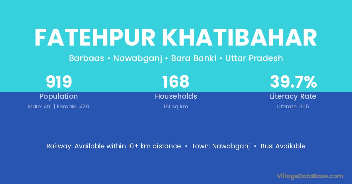 Fatehpur Khatibahar village has a total population of 919 people, of which 491 are males and 428 are females.