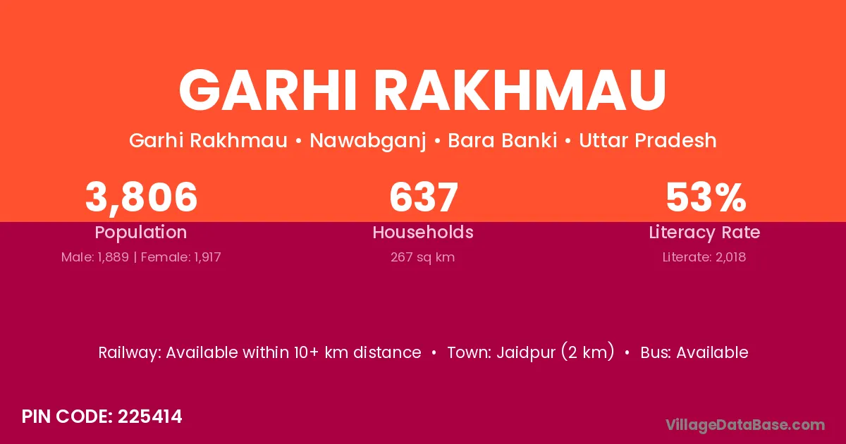 Garhi Rakhmau village has a total population of 3,806 people, of which 1,889 are males and 1,917 are females.