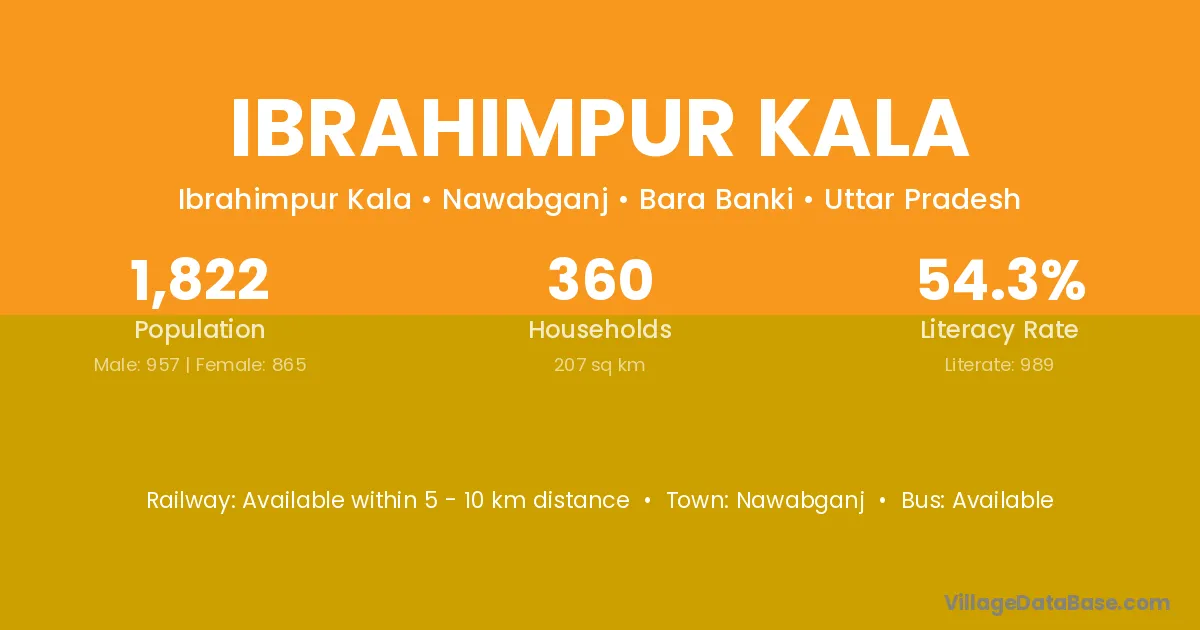 Ibrahimpur Kala village has a total population of 1,822 people, of which 957 are males and 865 are females.