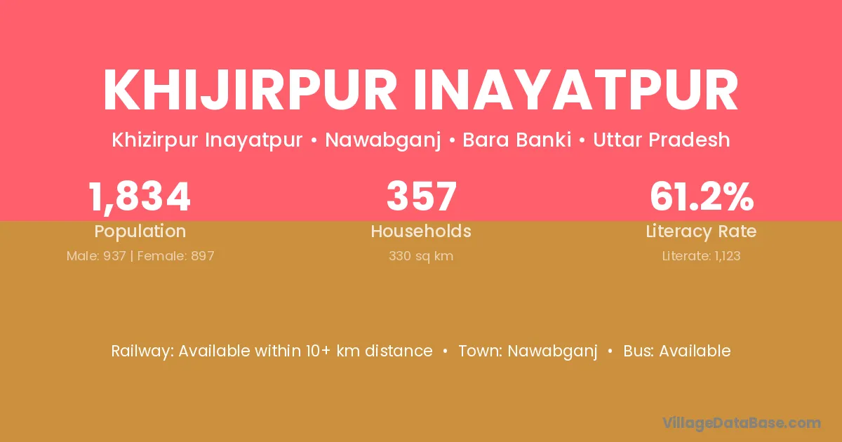 Khijirpur Inayatpur village has a total population of 1,834 people, of which 937 are males and 897 are females.