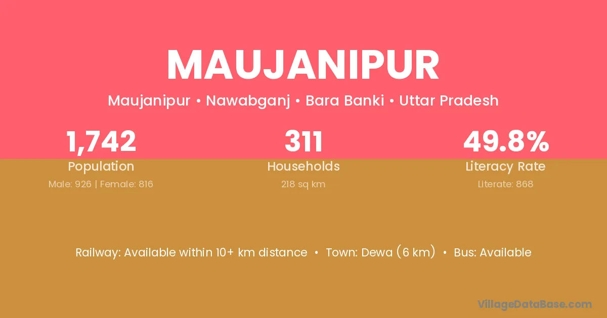 Dewa (6 km) is the nearest town to Maujanipur village for major economic activities and is located approximately 6 km away.