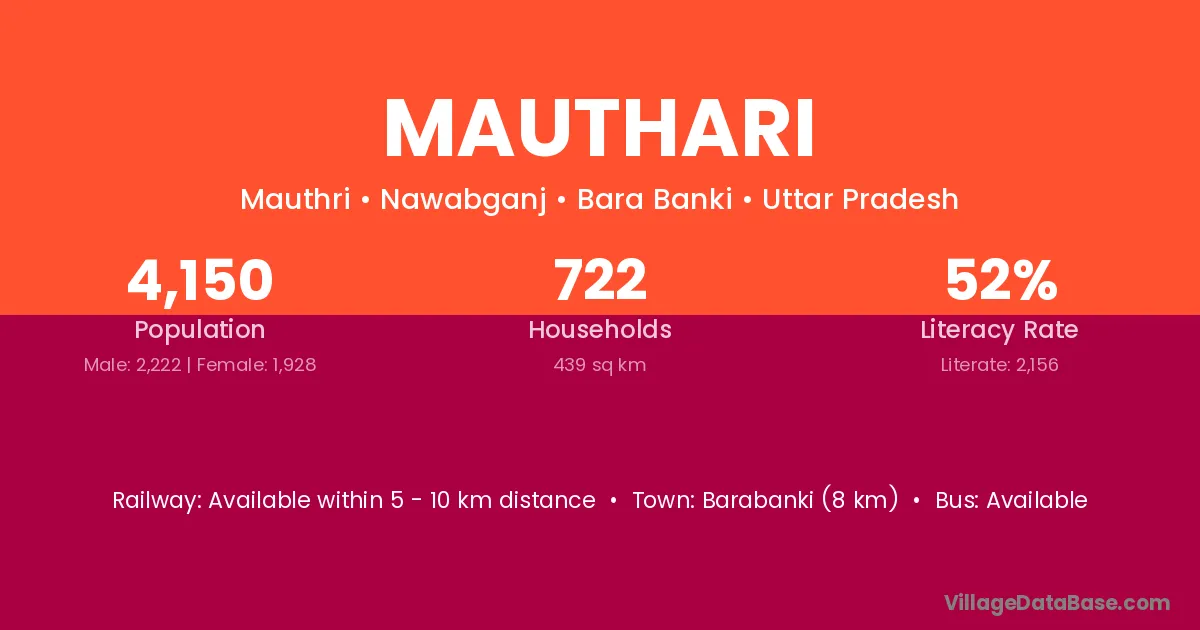Barabanki (8 km) is the nearest town to Mauthari village for major economic activities and is located approximately 8 km away.