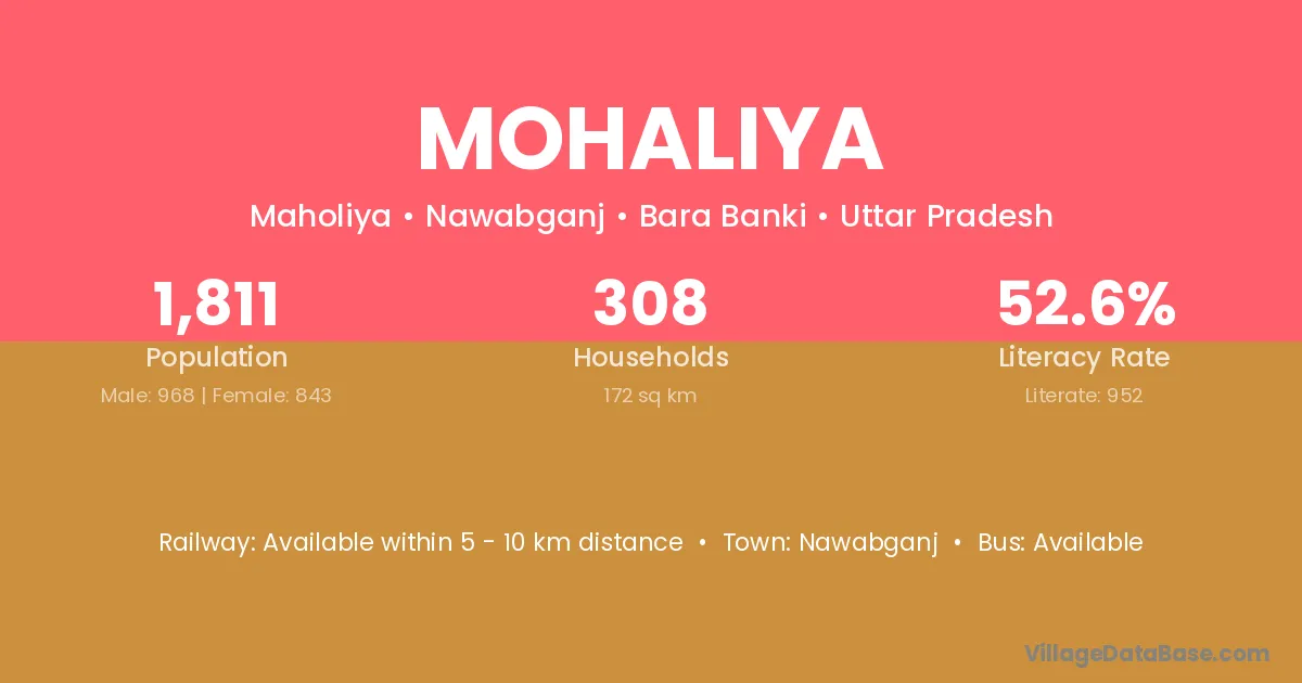 Mohaliya village has a total population of 1,811 people, of which 968 are males and 843 are females.