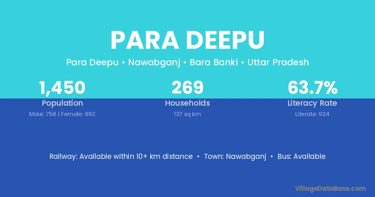 Para Deepu village has a total population of 1,450 people, of which 758 are males and 692 are females.