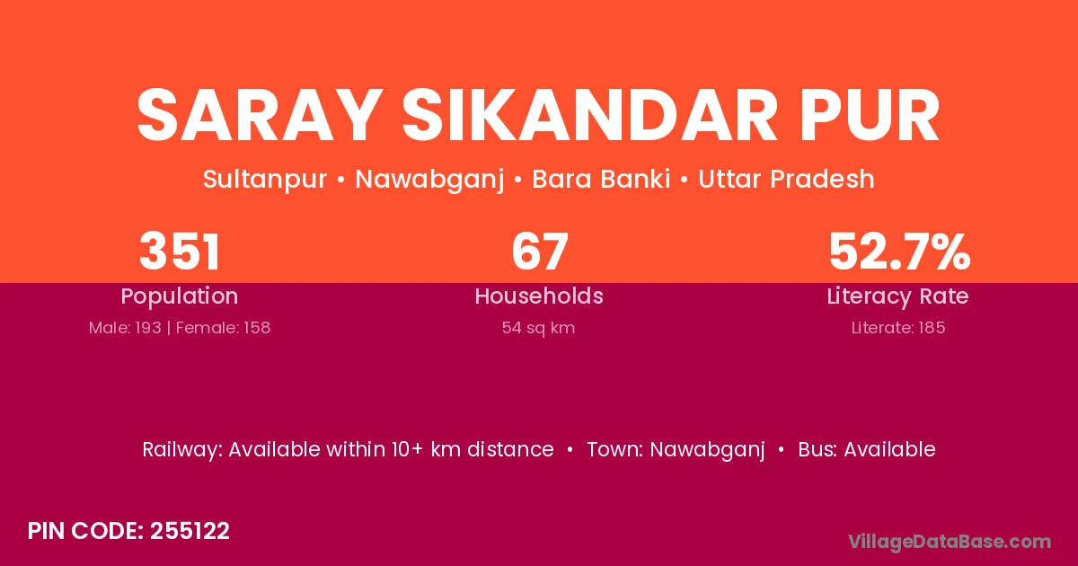 Saray Sikandar Pur village has a total population of 351 people, of which 193 are males and 158 are females.