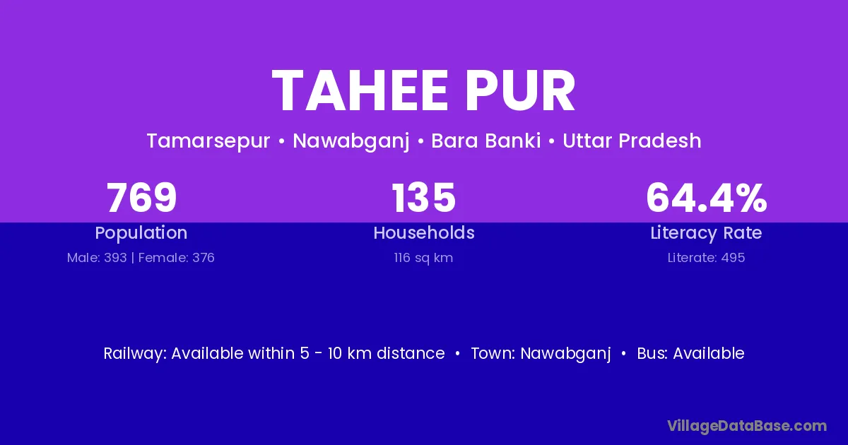 Tahee Pur village has a total population of 769 people, of which 393 are males and 376 are females.