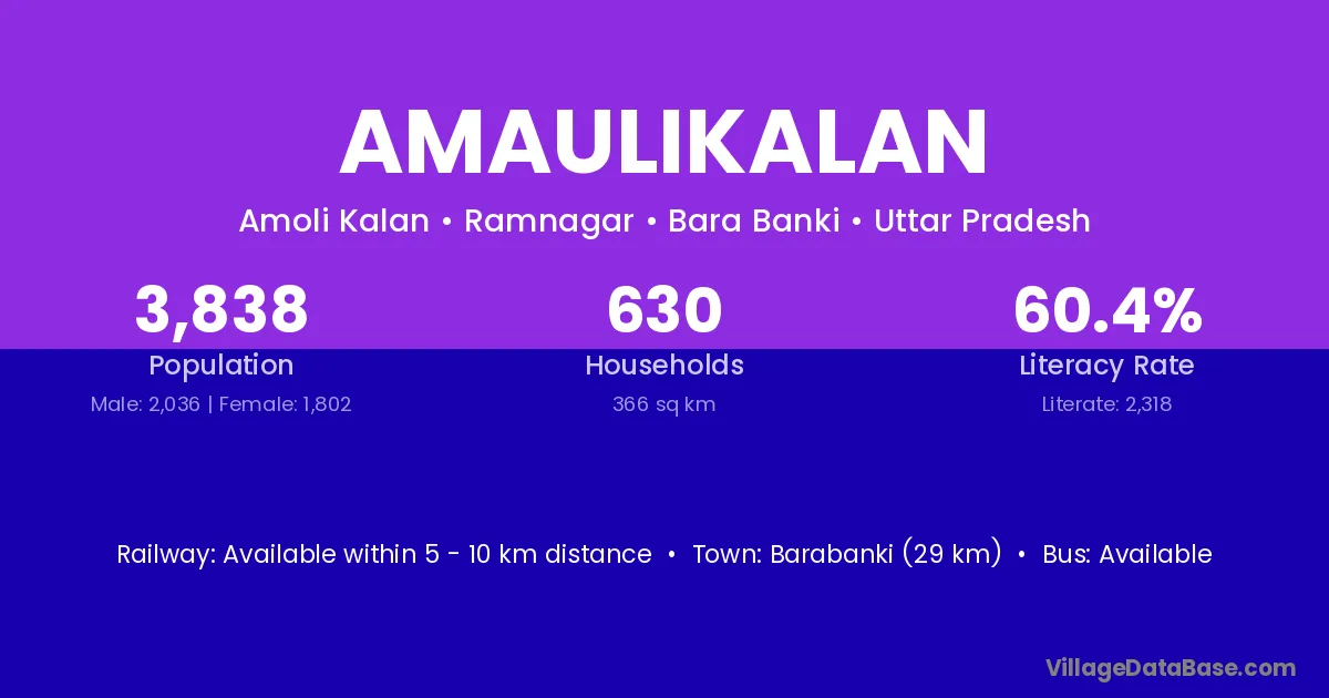 Barabanki (29 km) is the nearest town to Amaulikalan village for major economic activities and is located approximately 29 km away.