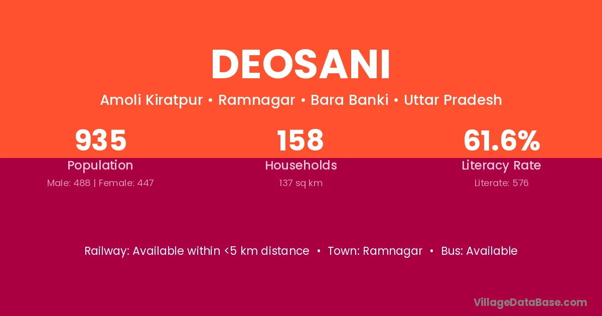 Deosani village has a total population of 935 people, of which 488 are males and 447 are females.