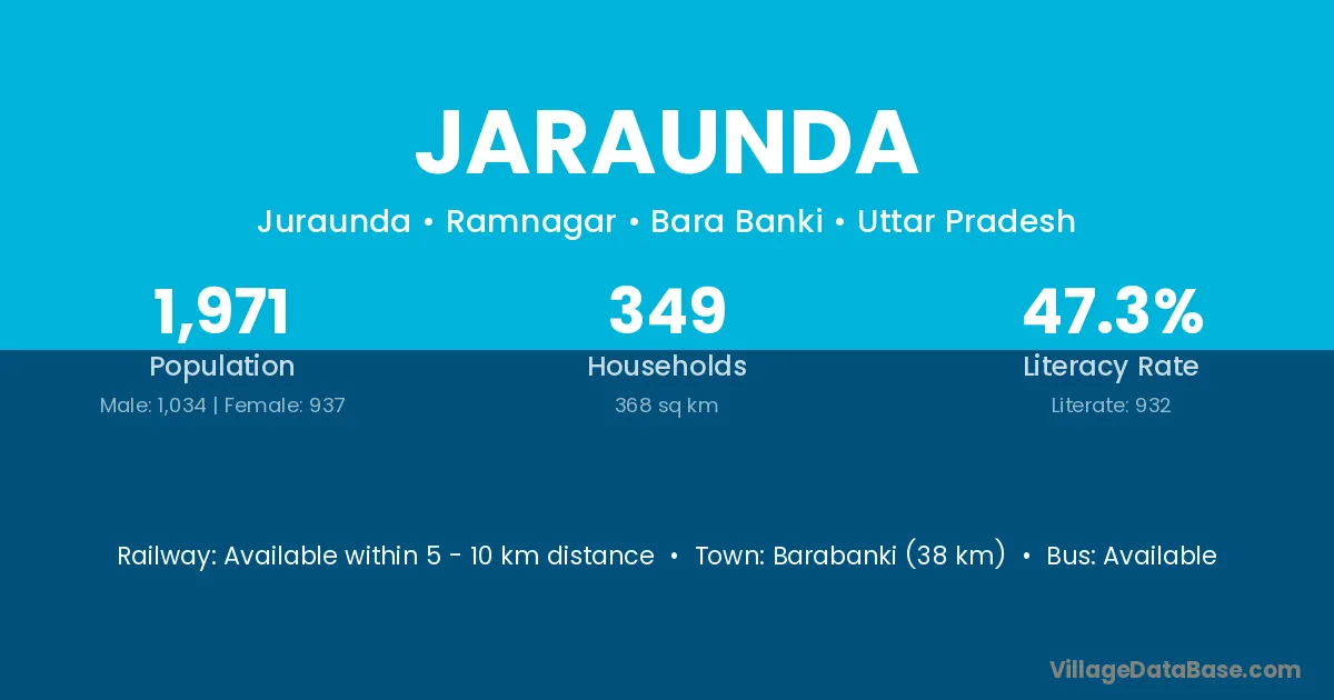 Barabanki (38 km) is the nearest town to Jaraunda village for major economic activities and is located approximately 38 km away.