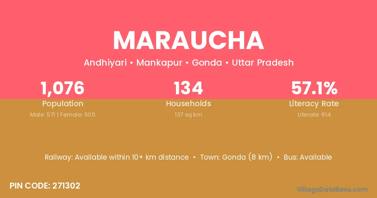 The literacy rate of Maraucha village is 35.21%. Male literacy stands at 41.63% and female literacy at 27.56%.