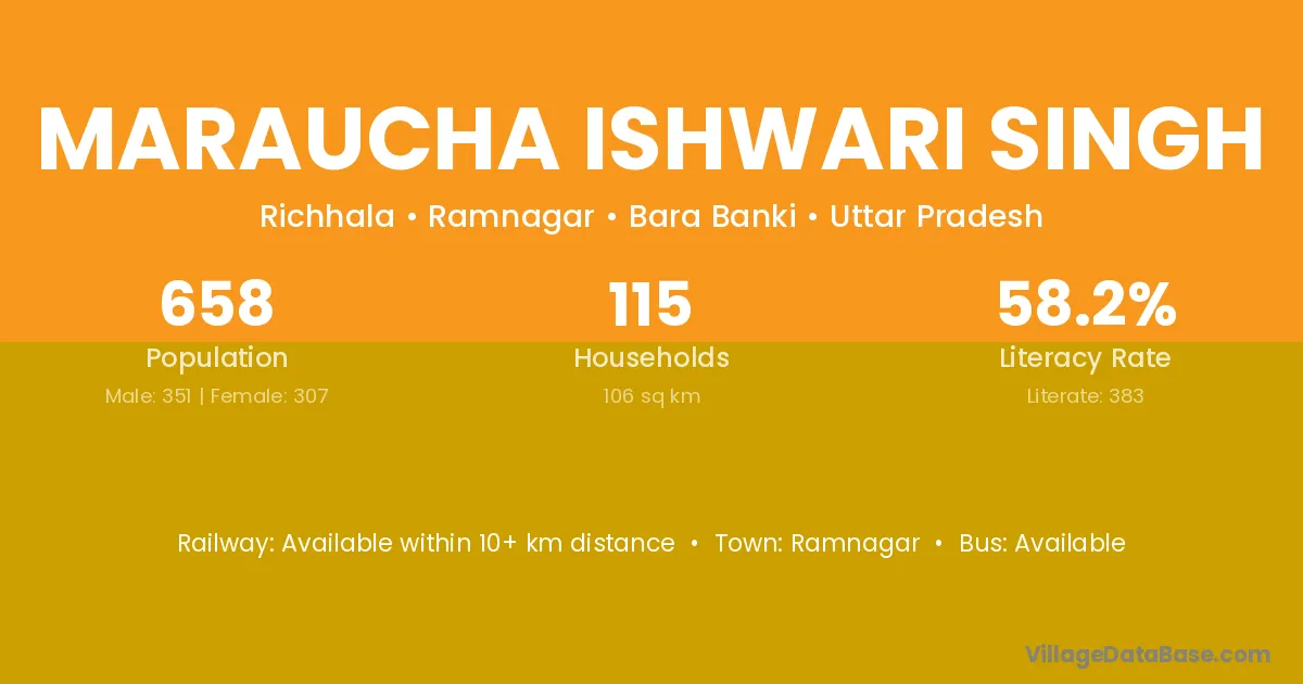 Maraucha Ishwari Singh village has a total population of 658 people, of which 351 are males and 307 are females.