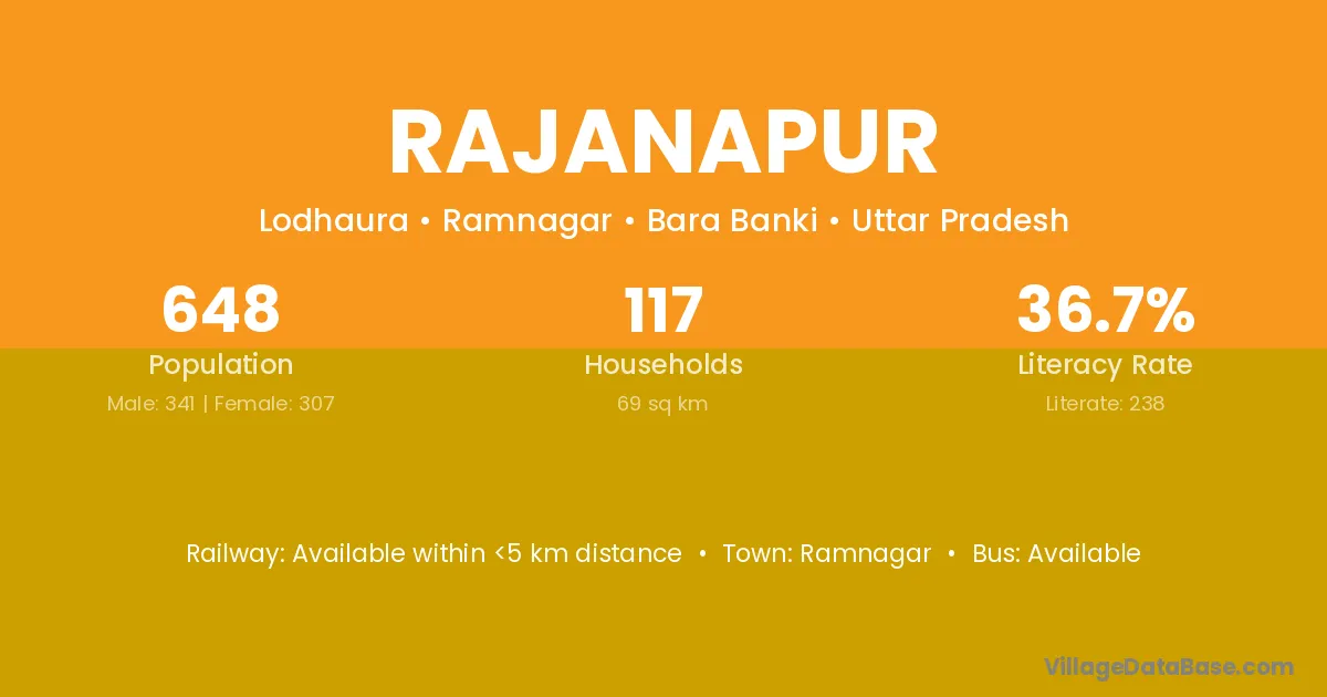 Rajanapur village has a total population of 648 people, of which 341 are males and 307 are females.