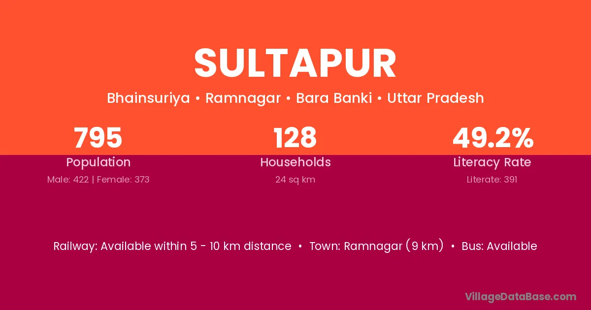 Sultapur village has a total population of 795 people, of which 422 are males and 373 are females.