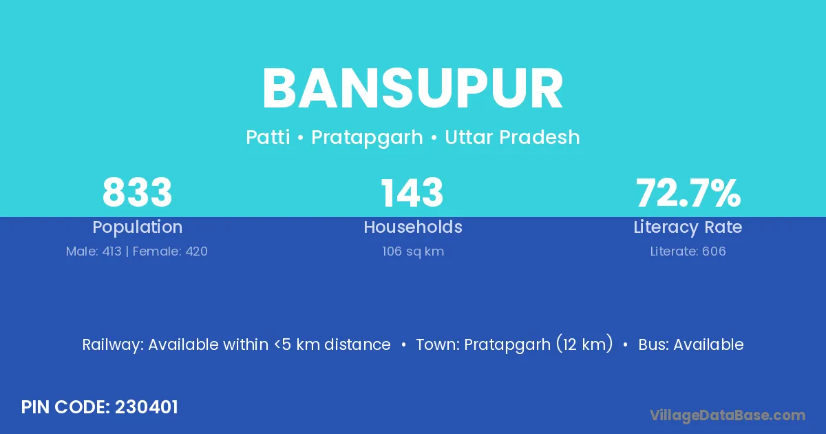 Bansupur village has a total population of 433 people, of which 219 are males and 214 are females.