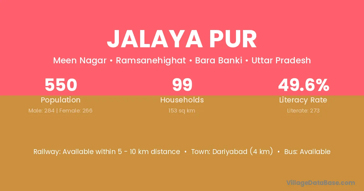 Jalaya Pur village has a total population of 550 people, of which 284 are males and 266 are females.