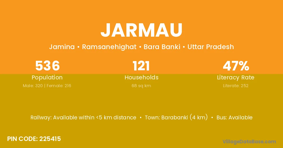 Barabanki (4 km) is the nearest town to Jarmau village for major economic activities and is located approximately 4 km away.