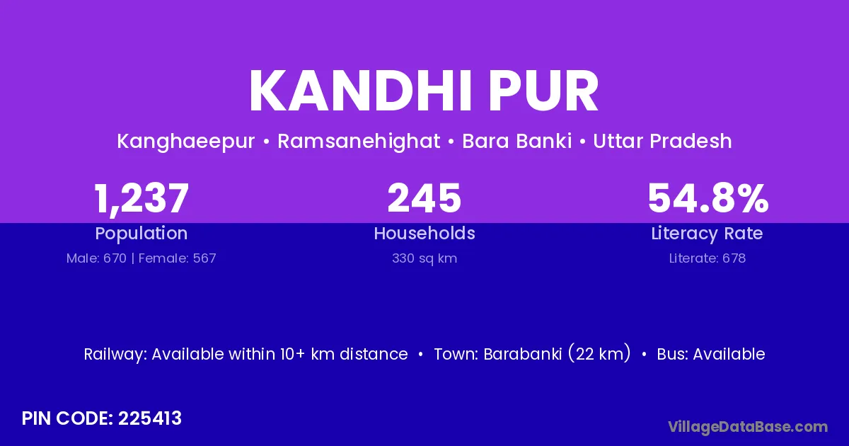Barabanki (22 km) is the nearest town to Kandhi Pur village for major economic activities and is located approximately 22 km away.