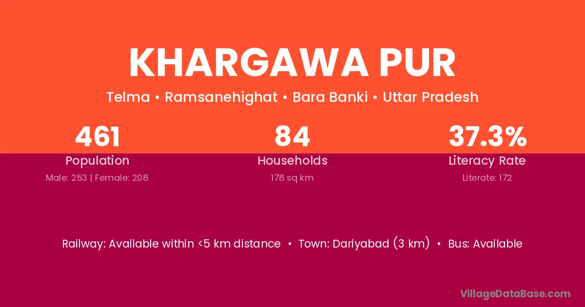Dariyabad (3 km) is the nearest town to Khargawa Pur village for major economic activities and is located approximately 3 km away.