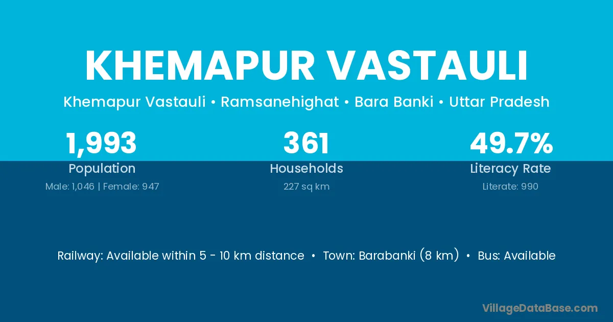 Barabanki (8 km) is the nearest town to Khemapur Vastauli village for major economic activities and is located approximately 8 km away.
