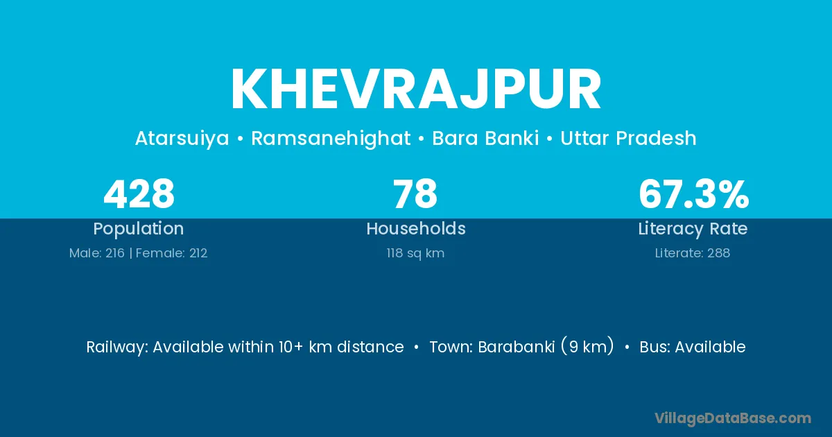 Barabanki (9 km) is the nearest town to Khevrajpur village for major economic activities and is located approximately 9 km away.