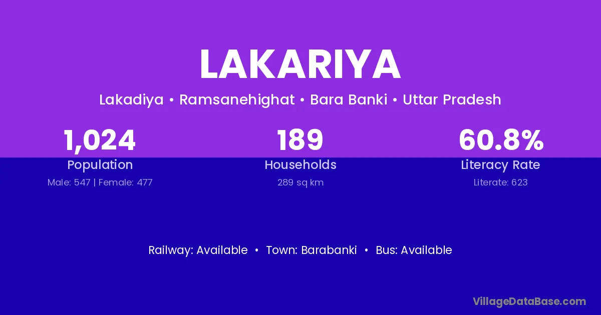 Barabanki is the nearest town to Lakariya village for major economic activities